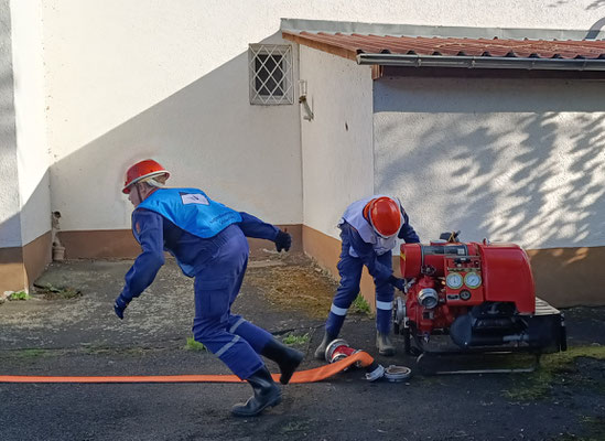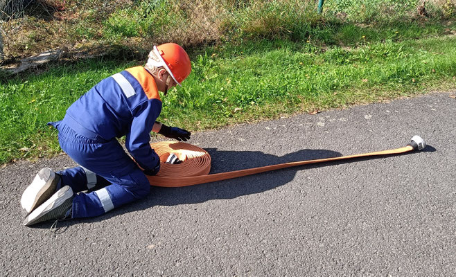 In drei Wochen steht für vier unserer Mitglieder die Abnahme der Jugendflamme der Stufe 2 auf dem Programm. Um die Vier bestmöglich vorzubereiten, heißt es die einzelnen Aufgaben zu üben. Der heutige Fokus lag dabei auf dem Aufbau einer Saugleitung zur Wasserentnahme aus einem offenen Gewässer. In Staffelstärke muss diese gekuppelt, mit Leinen eingebunden, an der Pumpe befestigt und zu „Wasser“ gelassen werden. Neben dieser Station müssen an der Abnahme noch eine Unfallstelle abgesichert und ein Wasserringmonitor aufgebaut werden. Als vierte Station wird Wissen zum Thema Gerätekunde abgefragt. Durchaus anspruchsvolle Aufgaben, mit der richtigen Vorbereitung jedoch zu meistern. Ob dies der Fall sein wird, entscheidet sich am 14.6. Bis dahin heißt es noch fleißig üben, üben und üben…