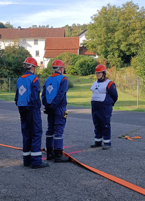 Der Unterverband Gelnhausen hat zur Abnahme des feuerwehrtechnischen Teils der Jugendflamme Stufe 2 geladen. Wie die letzten Jahre auch hat diese bei uns in Hellstein stattgefunden, was eine längere Anreise ersparte. Der Förderverein stellte als Ausrichter die Bewirtung der Veranstaltung sicher. Für die Prüflinge galt es vier Aufgaben zu absolvieren. In Staffelstärke musste eine Unfallstelle abgesichert, ein Wasserringmonitor aufgebaut und eine Saugleitung gekuppelt werden. Da wir aus Brachttal dieses Jahr drei Jugendliche zur Abnahme melden konnten, wurden diese Aufgaben zur Komplettierung der Staffel mit drei Jugendlichen aus Biebergemünd-Nord durchgeführt. Dies bedeutet auch die Aufgaben in komplett neuer Konstellation zu absolvieren, was eine zusätzliche Schwierigkeit darstellt, jedoch ohne größere Schwierigkeiten gelang. Des Weiteren ist eine Einzelabnahme durch eine Abfragung von theoretischem Wissen zum Thema Gerätekunde Bestandteil der Prüfung. Auch hier wurden alle notwendigen Anforderungen von den Prüflingen erfüllt. Ebenfalls muss zum Erhalt der Jugendflamme II ein sportlicher Teil in Form der Teilnahme am Völkerballturnier stattfinden. Bei Ronja ist diese Teilnahme noch offen, sodass sie ihr Abzeichen beim nächsten Turnier im Herbst erhalten wird. Theresa und Max haben durch ihre letztjährige Teilnahme den Sportteil bereits erfüllt und bekamen ihr Abzeichen somit direkt überreicht - Glückwunsch dazu.